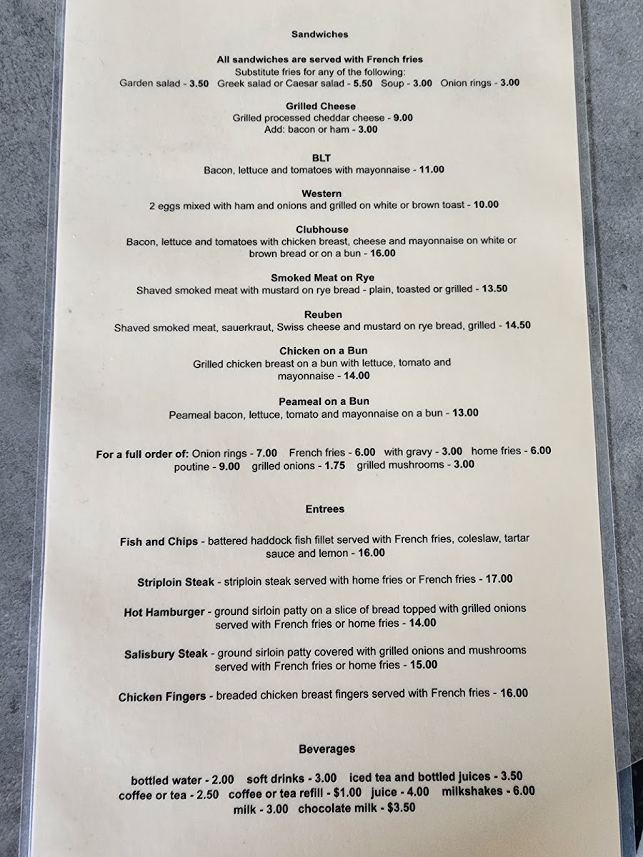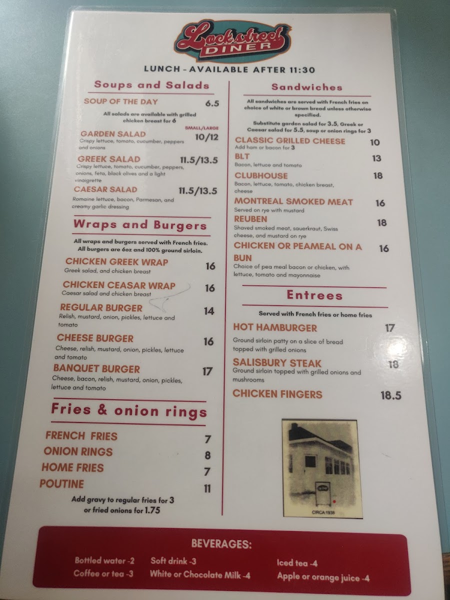 When it comes to sandwiches, the Lock Street Diner serves up comfort food with choices like the Grilled Cheese, BLT, and the Western Clubhouse. The Smoked Meat on Rye is a fan favorite, perfect for anyone craving something savory. For a more substantial meal, you can choose from their entrees, including Fish and Chips, Striploin Steak, Hot Hamburger, Salisbury Steak, and crispy Chicken Fingers.